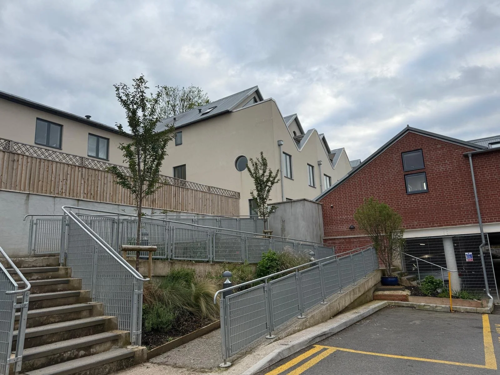 The community hub is the red brick building. Entrance is on the opposite side to what you can see in the above photo.