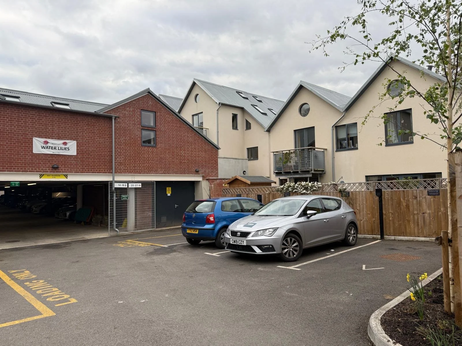 You can park here in the visitors spaces. If there aren’t any spaces you can park in the loading bay to the left (you can see it to the left of this picture)