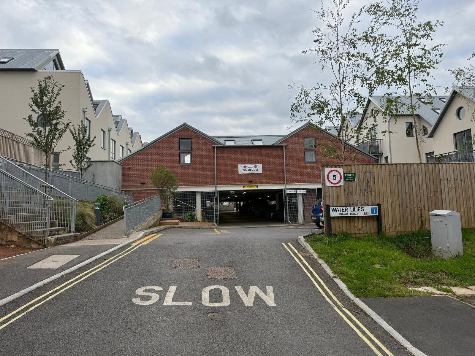 This will bring you to Alderdown close. Once you’re here you’ll see a new build of houses and an entrance like the picture to the left.